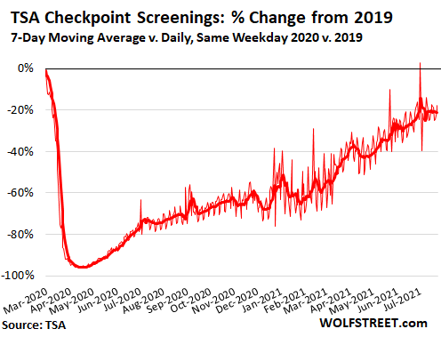 If we want to know how many head of cattle, we can look at TSA daily traveler numbers. In July it’s risen to around 80% of 2019 levels. On couple of days it has even surpassed 2019 numbers.