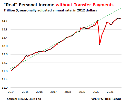 Get your head out of the closed loop of the financial world and see what has become of main street. What businesses that remain open are limiting hours for lack of help, despite now giving signing bonuses. Others are departing for greener pastures or simply “getting out while they can”. As printed money continues to flow into what is left of this economy, the killing effects of inflation will be creeping higher and higher up the plant’s roots and stems. The more spending “help” they enact the worse it gets.