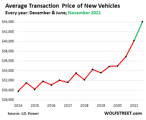In November, the ATP hit $44,043, according to J.D. Power estimates, up 18% from November 2020: