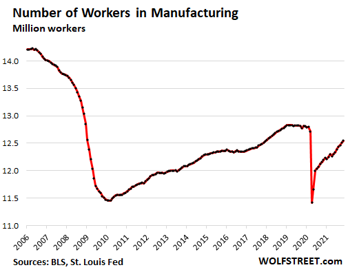 Employment in manufacturing rose by 48,000 workers to 12.55 million, but was still down by 253,000 from February 2020:
