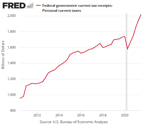 Wow !! Fed govt tax receipts have DOUBLED in 10 years and the USA still can’t come close to paying its bills. Embarrassing.