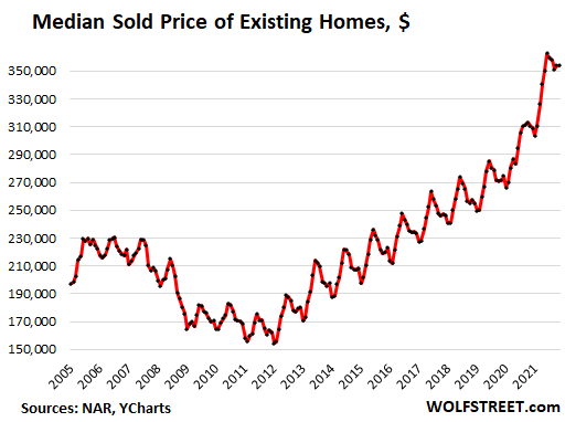 The median price of single-family houses, at $362,600, while down 2.0% from the peak in June, was still up 14.9% from a year ago.