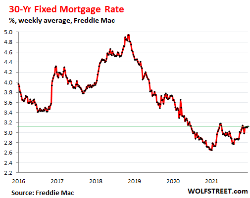 Mortgage rates have risen even though the Fed is still engaging in QE (though it has cut the amount of QE and will end it entirely by mid-March) and has not yet raised its policy rates, though rate hikes are on the table for next year: