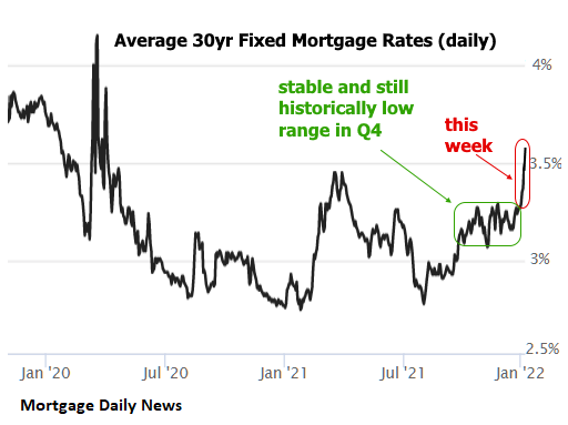 Average 30-year fixed today at 3.65%. A week ago, when I wrote the article, it was 3.5%. A week earlier, it was 3.2%. So in two weeks, mortgages rates moved up over 40 basis points. That’s pretty fast.