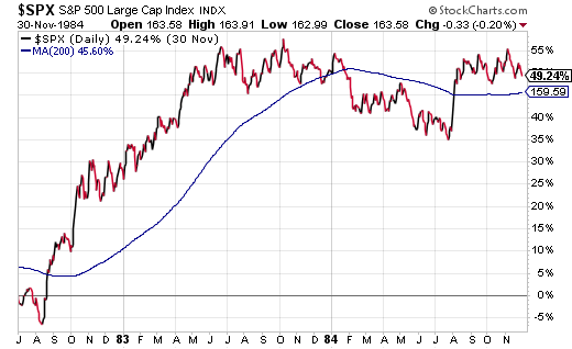 That led to an extended bull-bear market battle on either side of the 200-day average through most of 1983-1984, as shown below.