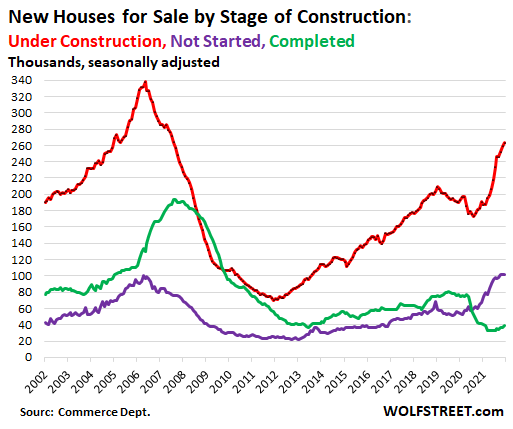 Homebuilders are on a wild ride, beset by shortages of materials and supplies, near-eternal lead times, spiking construction costs, difficulties in hiring, and projects that are bogged down. And inventories for sale, driven by homes that are still under construction and cannot be completed due to the shortages, are piling up.