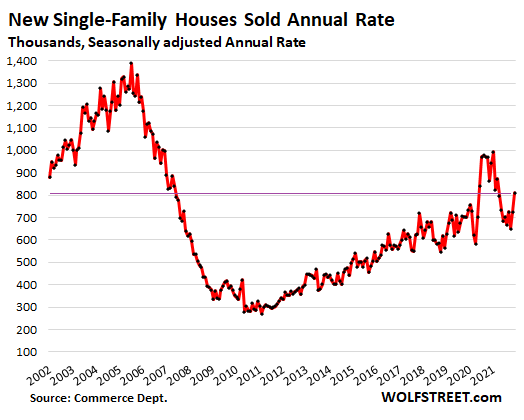 Apartment buildings and condo buildings are not included here, and the huge boom in multi-family construction in urban centers over the years is not reflected here. This is just sales of new single-family houses: