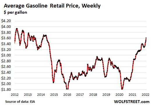 And if consumers go on a buyers’ strike and drive less, and if they use their most gas-sipping vehicle, and if they start shopping around, as demand comes down by 10%, well then, gas stations start competing on price again, and prices come down. But that hasn’t happened yet. That gas station below still had plenty of customers. It was still getting away with those price increases.