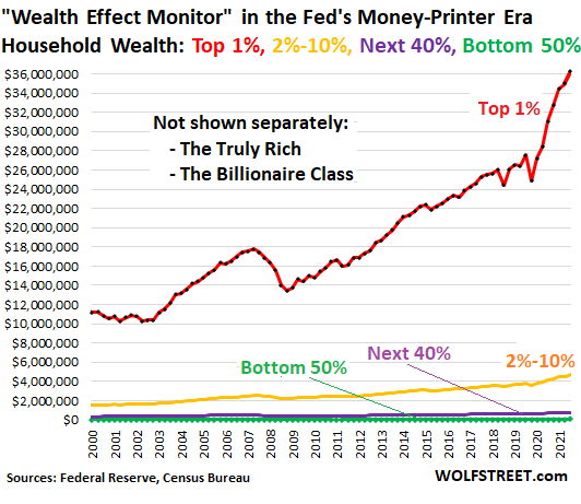 QE was designed to repress long-term Treasury yields, mortgage rates, long-term interest rates of any kind, and to inflate asset prices. It thereby created the biggest wealth disparity ever, documented by my Wealth Disparity Monitor, based on the Fed’s own data.