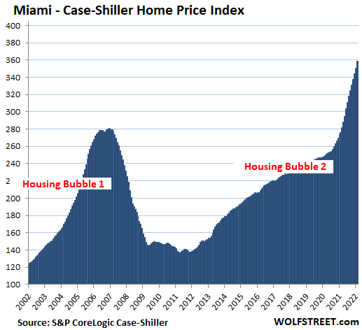 Miami metro: House prices spiked 2.3% for the month, and 29.7% year-over-year, the fastest since January 2006, on the eve of Miami’s can-never-happen-here epic Housing Bust: