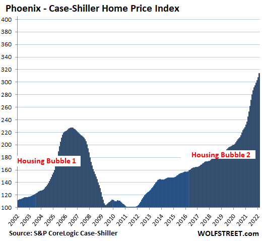 Phoenix metro: House prices spiked by 2.2% for the month, and by a record 32.9% year-over-year, the eighth month in a row of 30%+ year-over-year spikes: