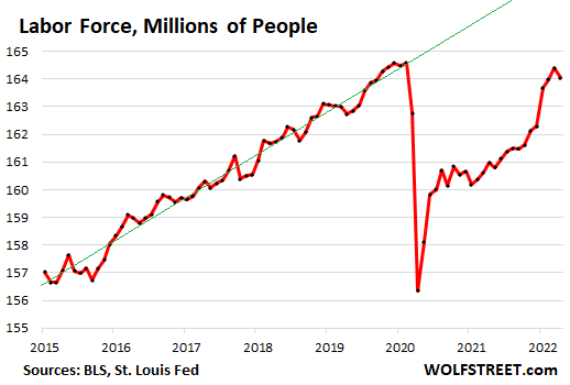The other option is to crack down on inflation, which would allow wage gains to catch up with price gains and maybe make it worthwhile again to join the rat race. That’s what the Fed is trying to do now, even if too little too late. And the Fed has been citing the labor market as one of the reasons for its crackdown on inflation.