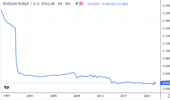 When was the last time the ruble was worth something? Before Russia got involved in WWI?