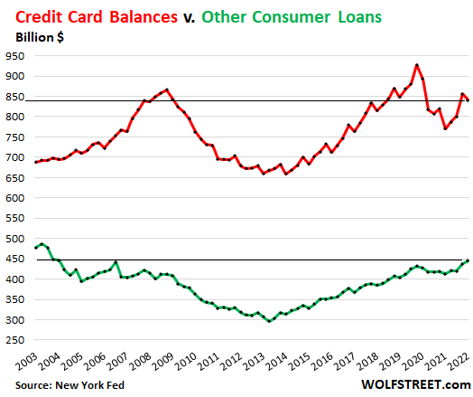 Raging inflation has outpaced the income growth of many Americans, and they’re also shifting spending into services. And yet, retail sales have continued to surge, including ecommerce sales. What is fascinating, in terms of shifts, is that there is a big boom going on at bars and restaurants, and at miscellaneous stores, which prominently include cannabis retailers – where sales far outpaced the rate of inflation.