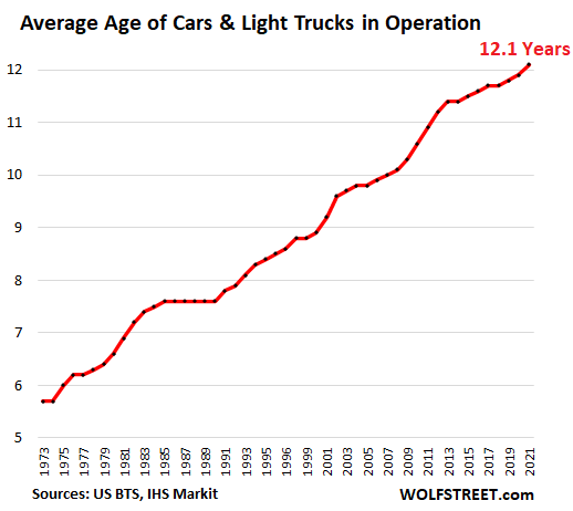 The steady increase in age for passenger vehicles is remarkable, though I don’t really understand the reason or implications.