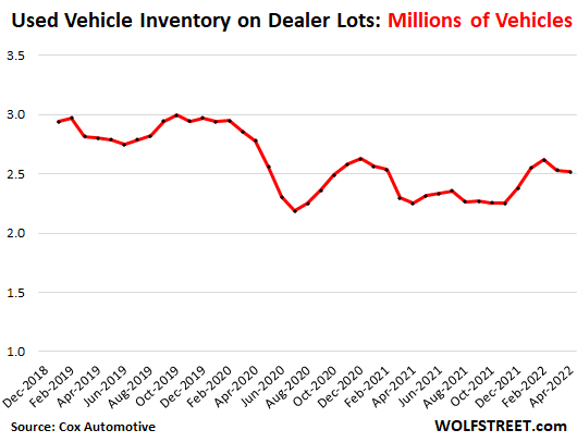 The number of used vehicles on dealer lots at the end of April, at 2.52 million vehicles, has been in the same range over the past four months, and was up 12% from a year ago, according to estimates by Cox Automotive released on Thursday.