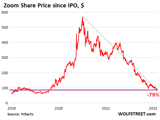 That’s one of the few companies of that ilk that are profitable, even if less profitable than before, and that are now having to deal with the reality of investors no longer blindly buying all the hype and hoopla, but seeing revenue growth of 12% when inflation is 8%, and they’re seeing a P/E ratio that is still 20, and they’re suddenly seeing the uncertainties that were there all along, and they’re seeing that everyone and their dog among big tech has had a competing video conferencing services for years and decades, and it’s hard to get blindly excited.
