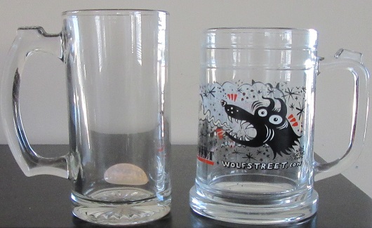 It has been over one year since I re-ordered the WOLF STREET beer and iced-tea mugs. They’re adorned by the essential WOLF STREET dictum, “Nothing Goes to Heck in a Straight Line.” San Francisco artist Erika “Kitten” Lopez created the three-color art. I re-ordered the mugs on May 31 2021, while I still had enough to get me to November. And they did. But then I ran out. I have been in continued contact with my supplier, and there is still no word when production of the blank glass mug will start again. And I cannot even get confirmed that this model of blank mug will ever be produced again (the tangled-up supply chain of to the WOLF STREET mug).