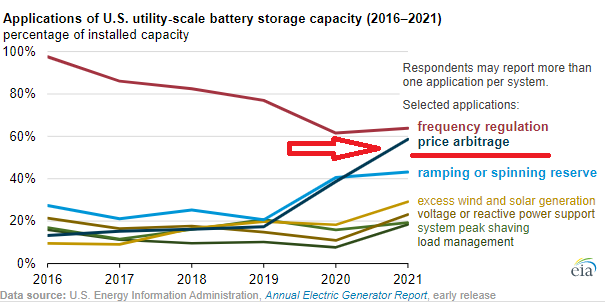 This one is titled: “Battery systems on the U.S. power grid are increasingly used to respond to price.”