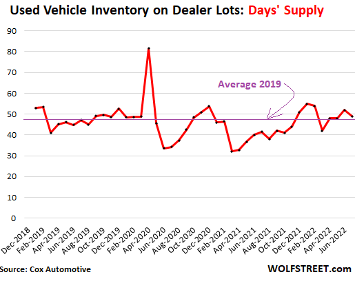 Days’ supply at the end of July declined to 37 days, from 38 days in June, same as in January. By comparison, in 2019, supply averaged 89 days.