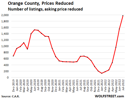 But your comment is batshit crazy at a second and even more important level because even in Orange County, you’re dead wrong, despite citing a couple of addresses with possibly multiple buyers. Here are the number of listings with prices REDUCED in Orange County: