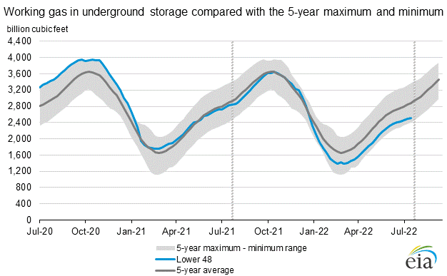 The amount of natural gas in U.S. storage is well below the average for this time of year. Record heat is increasing the use of air conditioners. NASA reported this past June was the hottest June on record. Environmentalists try to reduce the use of coal electric power and switch to nat gas electric power generation. The price of coal is rising as China and India burn more coal. EV’s are becoming popular. They require more electricity than solar cell installations can provide. LNG facilities are being built or expanded in numerous nations. Canada is building one along their Pacific coast. Qatar is expanding their LNG facilities. The U.S. exports natural gas to Mexico.