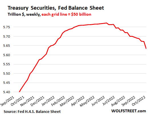 The Fed stopped buying MBS on September 16 altogether, and so the inflow of new MBS onto the balance sheet, which is already small, will fizzle out in November.