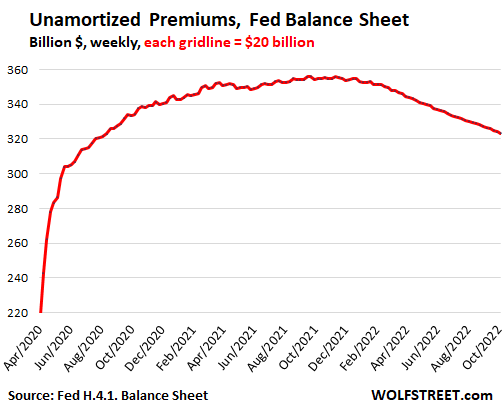 Unamortized premiums peaked in November 2021 at $356 billion and have now declined by $32 billion to $323 billion: