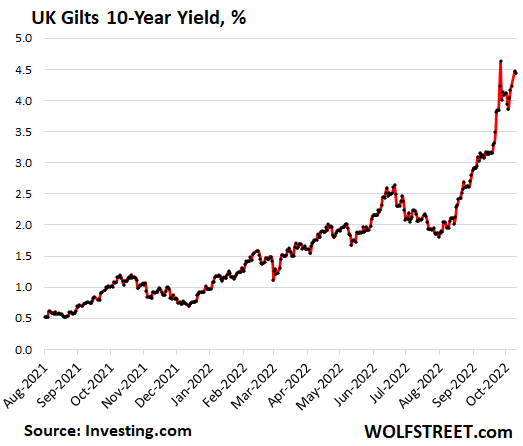 The “incongruity” that you mention hasn’t been in the BOE’s actions but the financial media’s clickbait BS about the BOE’s actions, which the clickbait media called “pivot.” And they made a lot of hay with it. But there was no pivot, I told you that from the beginning on Sep 28, and every time I wrote about it since then. But to people who believed this clickbait pivot BS, the BOE’s steadfastness suddenly seems to be “incongruity.” Go figure!