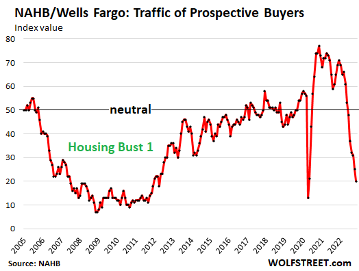 Homebuilders reported plunging traffic of prospective buyers of new single-family houses, according to the National Association of Home Builders last week. Its index of Traffic of Prospective Buyers has plunged for eight months in a row and in November fell below the May 2020 level.