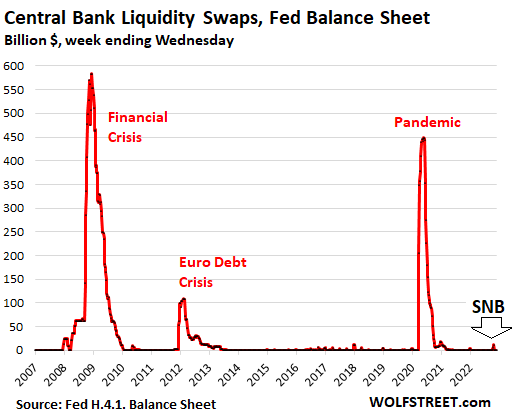 Starting on September 14, the Swiss National Bank used the long-standing swap line with the Fed for five 7-day dollar-swaps in a row. The last and largest swap amounted to $11.1 billion, which matured on October 27. Since then, there have been no swaps with the SNB, and the balance with the SNB has been $0. The SNB likely did this to provide short-term dollar-liquidity to Credit Suisse, which had come under attack by a massive outflow of funds.