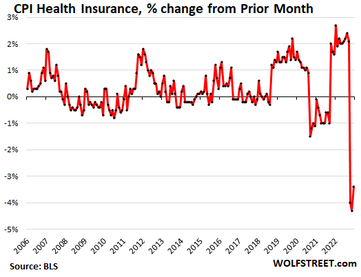 This was now the third month in a row of this mega-massive adjustment to health insurance. This is the month-to-month plunge due to the adjustment. This replaces what might have been a 1% month-to-month increase: