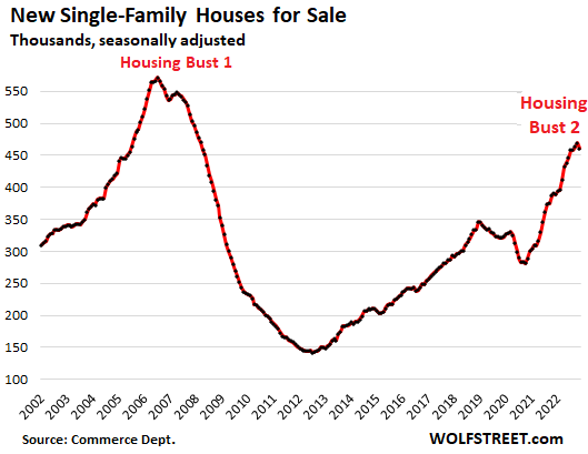 Housing Bubble 2 is deflating relentlessly, not under the pressure of an unemployment crisis – far from it: the labor market is still historically tight with the highest pay increases in four decades, and an increase in unemployment would be the next shoe to drop on the housing market – but because mortgage rates have reverted to the normal levels of 6% to 7% that existed before the money-printing era started in 2008. And home prices that exploded over the past few years, fueled by mortgage rates of 3% and lower, don’t make sense anymore – and never made sense to begin with.