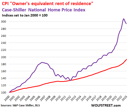 But it screwed up the city-specific view. And that’s why I changed it. For example from Jan 2020 through the peak, the smaller bubble Las Vegas spiked by 54%. But the biggest bubble San Diego spiked by about the same percentage, yet the Las Vegas spike looked a LOT smaller. It made it seem like prices in Las Vegas rose a lot less over those three years than in San Francisco, when in fact they rose about the same. This was very confusing, and I had to change the Y-axis to fit each city.