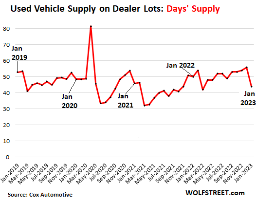 How is used supply the relevant metric? First, it clearly dropped from pre-pandemic levels. Second, the relevant metric is total supply. As new supply drops you raise prices on used and maintain (or try to maintain) balanced inventory overall. Classic inventory management through pricing adjustment.