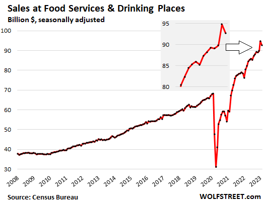 “Perma bears”??? You’re referring to who? Did you ever even read a single article here? Wolf Street has been one of the few sites out there that have for over a year said that consumers aren’t landing, soft or otherwise — see this article right here — that the labor market isn’t landing either, that companies are hiring as fast as they can find people, that wages are surging, that consumers are working and spending money like drunken sailors, and that the economy continues to defy predictions, and we still don’t have a recession – in part because there is still way too much pandemic money floating around out there.