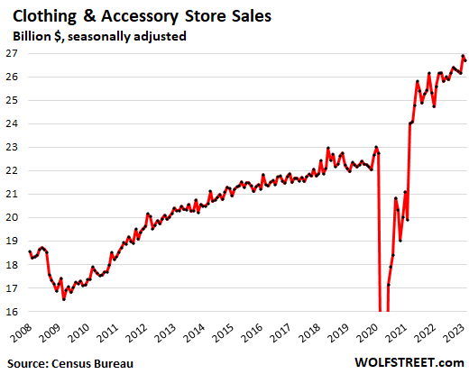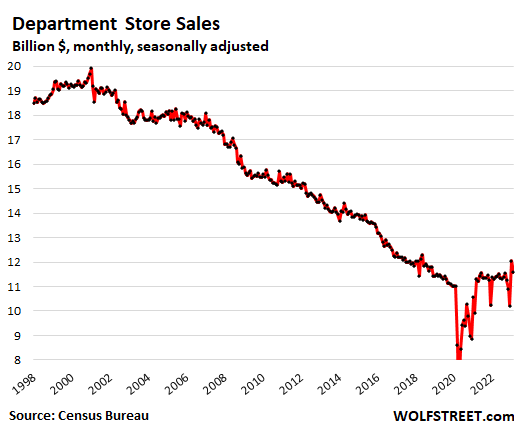 Department stores (now down to 1.7% of total retail, as consumers increasingly bought this stuff online, including at the ecommerce sites of the few surviving department store chains):