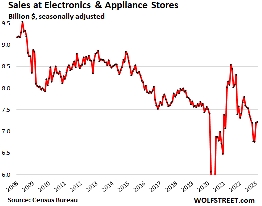 Electronics and appliance stores: Sales at specialty electronics and appliance stores (Best Buy, Apple stores, etc.). Not included are the electronics and appliance sales at ecommerce operations and at other brick-and-mortar retailers, such as General Merchandise stores.