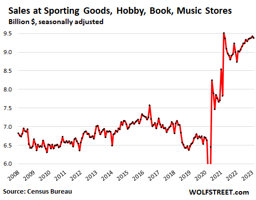 Sporting goods, hobby, book and music stores (1.3% of total retail);