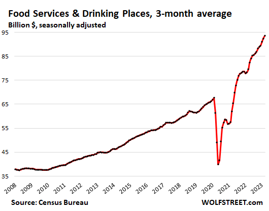 Food services and drinking places (13% of total retail), includes restaurants, cafeterias, bars, etc.