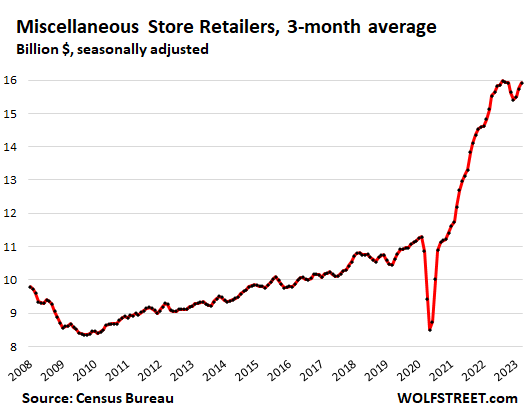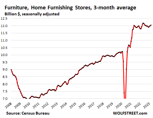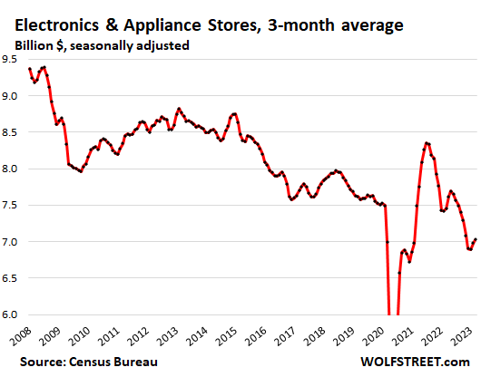 Department stores (now down to 1.7% of total retail, as consumers increasingly bought this stuff online, including at the ecommerce sites of the few surviving department store chains):