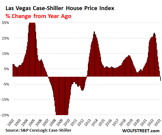 And here are the year-over-year percentage changes of the index for Las Vegas. This was the month the index flipped to a year-over-year decline.
