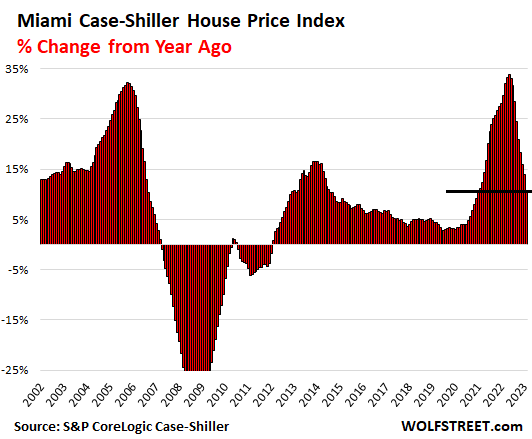 And here are the year-over-year percentage changes of the index for Miami. You can see that the market is about six to eight months behind Seattle: