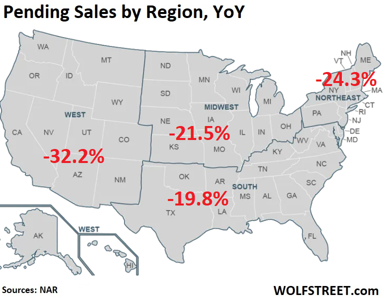 Pending home sales by region, compared to March a year ago, plunged by the most in the West.