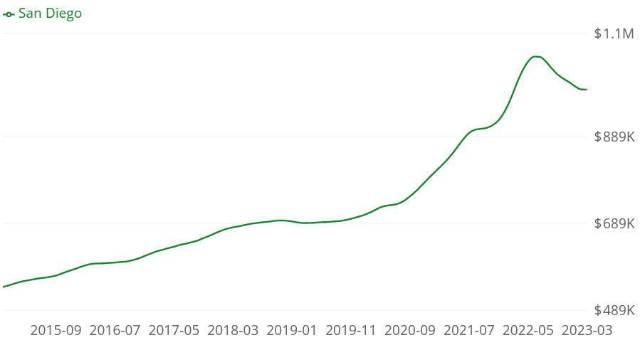 I clicked on the Zillow link Wolf posted above. Holy smokes. It says: “ The average San Diego home value is $893,457, down 0.5% over the past year and goes to pending in around 17 days.”