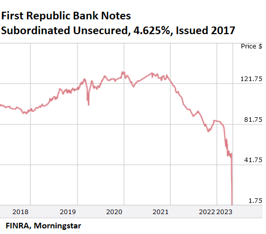 On Feb 2, 2023, First Republic redeemed $500 million of 1.912% senior unsecured bank notes for 99.94 cents on the dollar. So those holders got their money out three months ago.