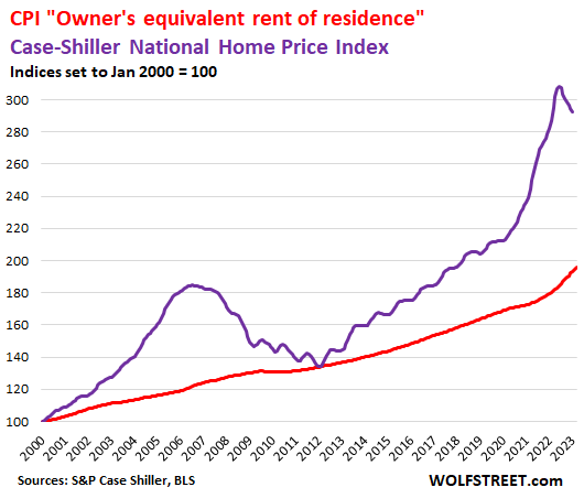 So it seems unlikely that Fed chair Jerome Powell’s assumption will play out that rent inflation will be slowing sharply in a few months, and that actual rents are already going down, and that rent inflation will reach the point where it will no longer be an issue, and that the CPIs for rent are heading back to the 2% to 3% range, and that this decline is already baked in because the rent indices are lagging indicators, etc. etc.