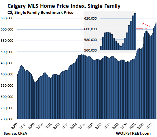 Calgary: The single-family benchmark price rose 0.8% for the month, and by 6.2% year-over-year, to a new record of $629,800:
