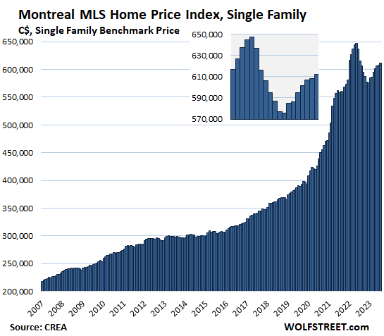 Montreal: The single-family benchmark price rose 0.6% for the month to $611,900:
