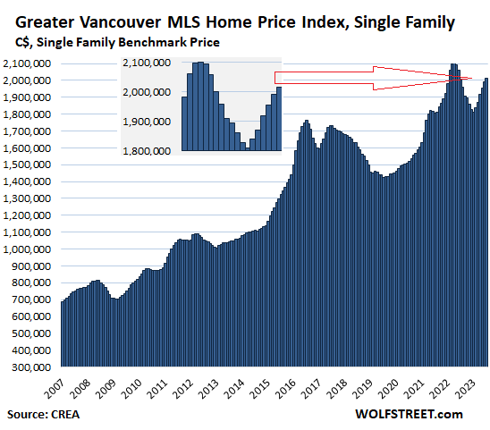 Greater Vancouver: The MLS Home Price Benchmark Price for single-family houses rose by 1.1% in July from June, to $2.015 million: